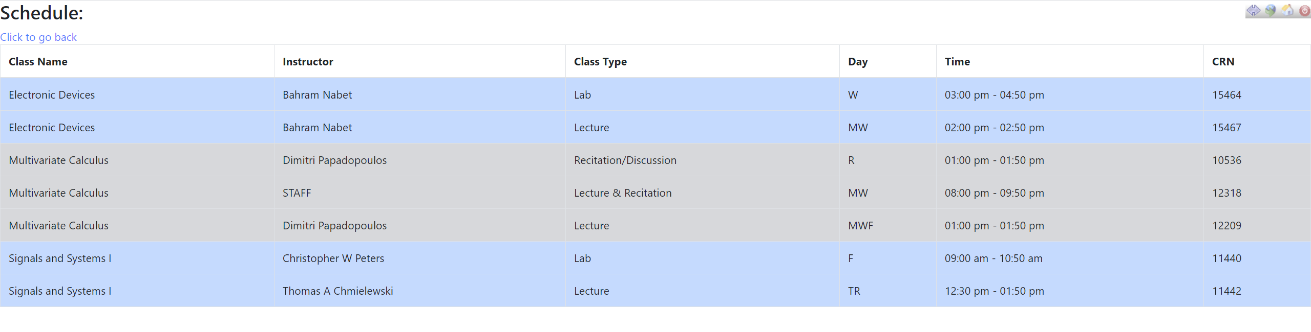 In this project, I took away the hassle of finding classes that have no timing conflicts. One simply plugs in the Drexel classes one wants to take, and the program makes a schedule based off the listed class times in Drexel's class database.